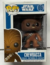 The 06 Chewbacca (Blue Box) Funko Pop has a current estimated value of USD 40.00, based on 0 auctions this month.