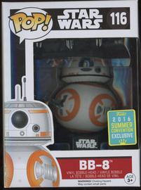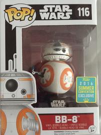 The 116 BB-8 (SDCC 2016) Funko Pop has a current estimated value of USD 7.50, based on 0 auctions this month.
