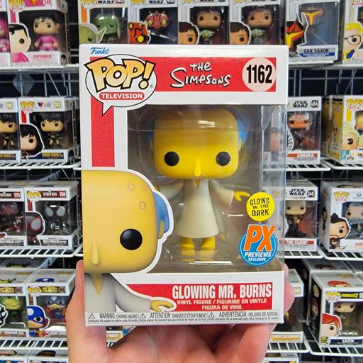 The 1162 Glowing Mr. Burns (Glows In The Dark) (PX Previews) Funko Pop has a current estimated value of USD 4.00, based on 0 auctions this month.