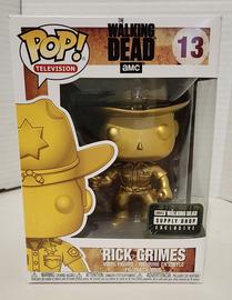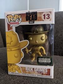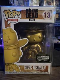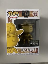 The 13 Rick Grimes (Gold) Funko Pop has a current estimated value of USD 42.00, based on 0 auctions this month.