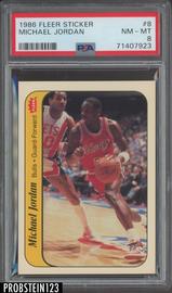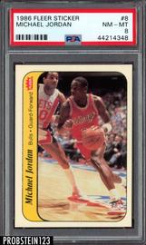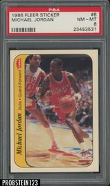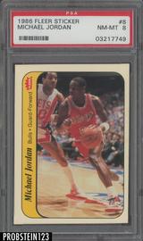 1986 Fleer Sticker Basketball #8 Michael Jordan RC PSA 8