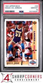 1991 Upper Deck #34 Magic Johnson vs. Michael Jordan PSA 10