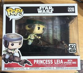 The 228 Princess Leia With Speeder Bike (40th Anniversary) Funko Pop has a current estimated value of USD 8.59, based on 0 auctions this month.