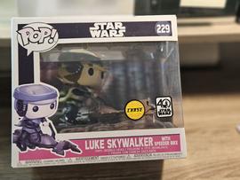 The 229 Luke Skywalker With Speeder Bike (Chase) (40th Anniversary) Funko Pop has a current estimated value of USD 10.50, based on 0 auctions this month.