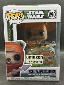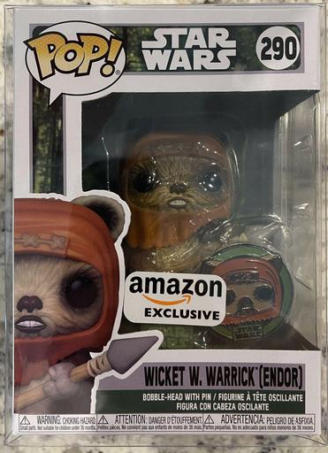 The 290 Wicket W. Warrick (Endor) (Amazon) Funko Pop has a current estimated value of USD 5.50, based on 0 auctions this month.