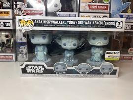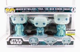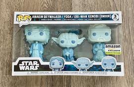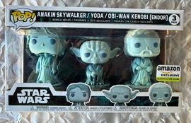 The 3-Pack Anakin Skywalker Yoda Obi Wan Kenobi (Endor) (Amazon) Funko Pop has a current estimated value of USD 4.99, based on 0 auctions this month.