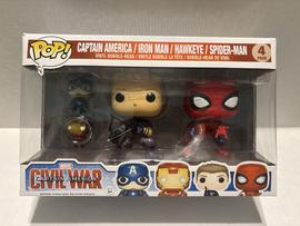 FUNKO POP CAPTAIN AMERICA CIVIL WAR 4 PACK IRON MAN HAWKEYE SPIDER-MAN | $24.74 | Feb 03, 2026 |