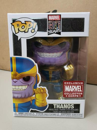 The 509 Thanos (First Appearance) Funko Pop has a current estimated value of USD 12.50, based on 0 auctions this month.