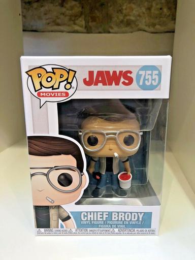 The 755 Chief Brody Funko Pop has a current estimated value of USD 29.99, based on 0 auctions this month.