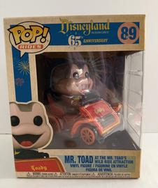 The 89 Mr. Toad at the Mr. Toad's Wild Ride Attraction Funko Pop has a current estimated value of USD 17.99, based on 0 auctions this month.