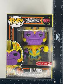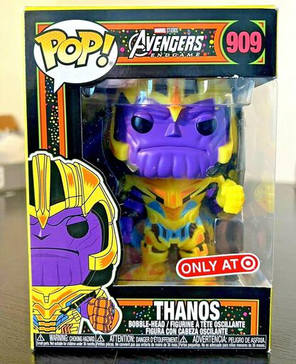 The 909 Thanos (Black Light) (Target) Funko Pop has a current estimated value of USD 4.25, based on 0 auctions this month.