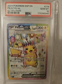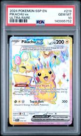 Pokémon Pikachu ex SV08 Surging Sparks Ultra Rare PSA 10 Holo 219/191 | $129.95 | Mar 17, 2026 |