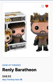 2013 Funko Pop! Vinyl Game of Thrones Renly Baratheon #12 | $34.99 | Jan 27, 2026 |