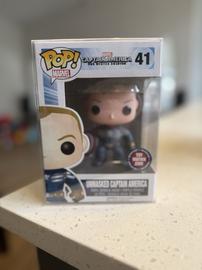 The 41 Unmasked Captain America Funko Pop has a current estimated value of USD 90.00, based on 0 auctions this month.